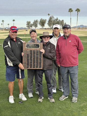The Robson Ranch Men’s Golf Association (RRMGA) celebrated its President’s Cup golf tournament on Feb. 19 and 20, marking a special occasion to honor both past and current presidents. Members gathered to recognize the dedicated service of leaders who have shaped the club’s journey, presenting a commemorative plaque that will be displayed at the Robson Ranch Golf Pro Shop.