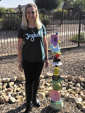 Kim Gibbs held the winning ticket for the Ceramic Totem raffle. Doesn’t it look great in her yard? You might recognize Kim from Sierra Sound when they entertain in the Tack Room.