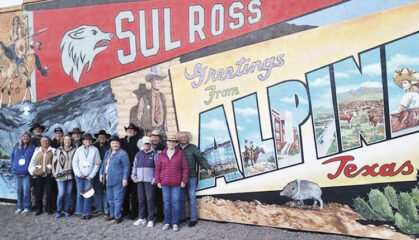 Our adventure started with a night in Deming, N.M., with a hosted taco bar. The next stop was Van Horn, Texas, where we enjoyed each other’s company at the Hang Out Grill. Onward to the big event in Alpine, Texas, where we had a potluck dinner at the clubhouse at the Lost Alaskan RV Park. We dined at the famous Reata restaurant in Alpine on Thursday. Friday and Saturday brought two days of fantastic Cowboy Poetry at Cal Ross University. We enjoyed a variety of music and poetry from all over the U.S. Henry Morgan invited the group to observe the stars from his telescope. Fantastic dark skies!